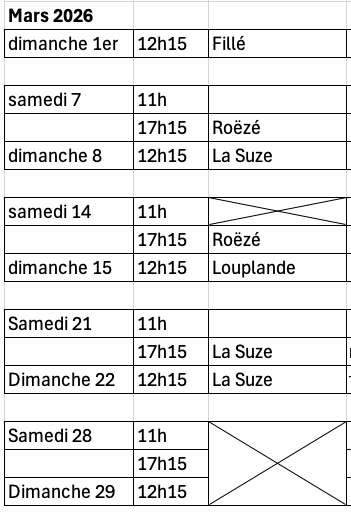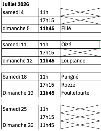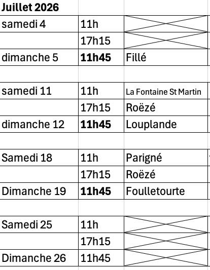 Les samedis à 11h, lorsque le lieu n’est pas indiqué, il est choisi par la première famille à s’inscrire.